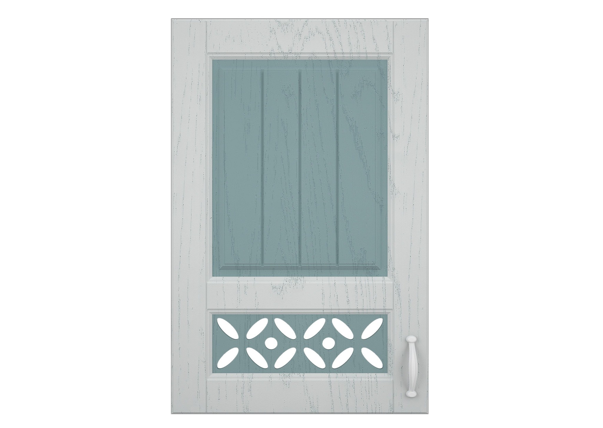 Цвет фасада комбинированный. Рамка МДФ Арктик, вставки в цветах Мурено, Серый